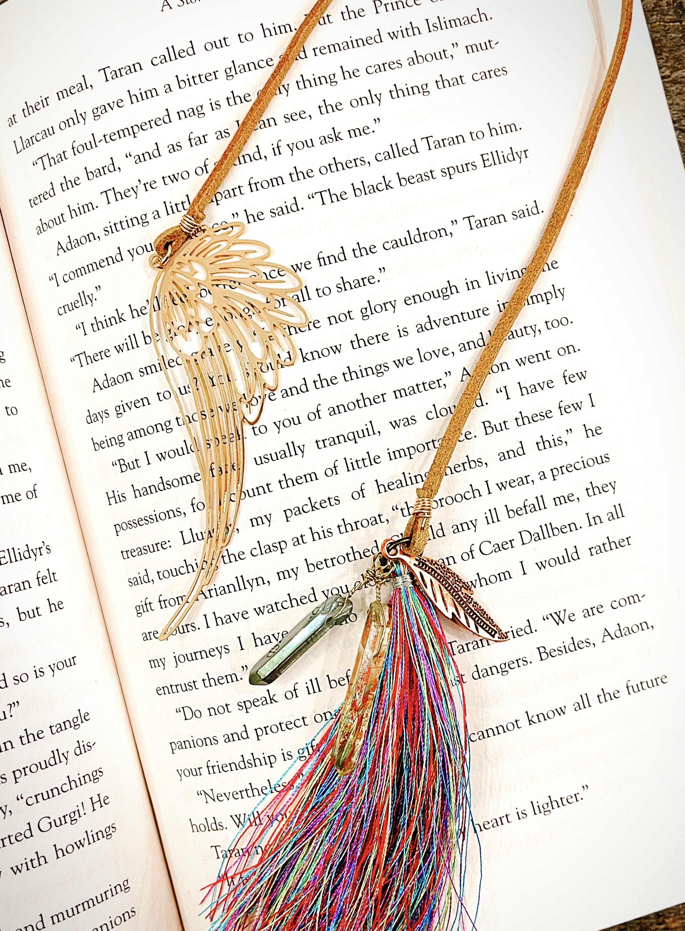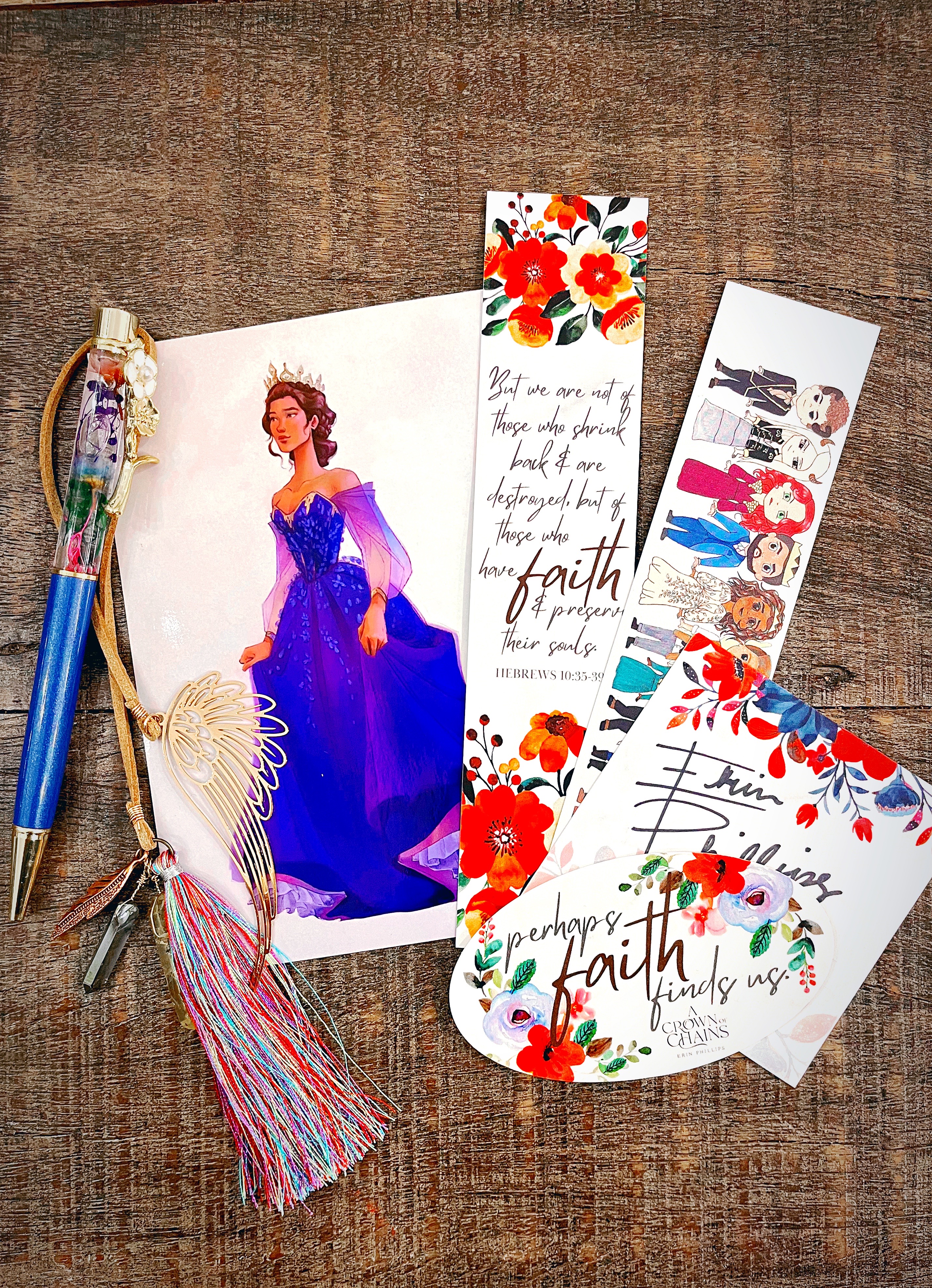 - One handmade leather bookmark with ACOC inspired charms.